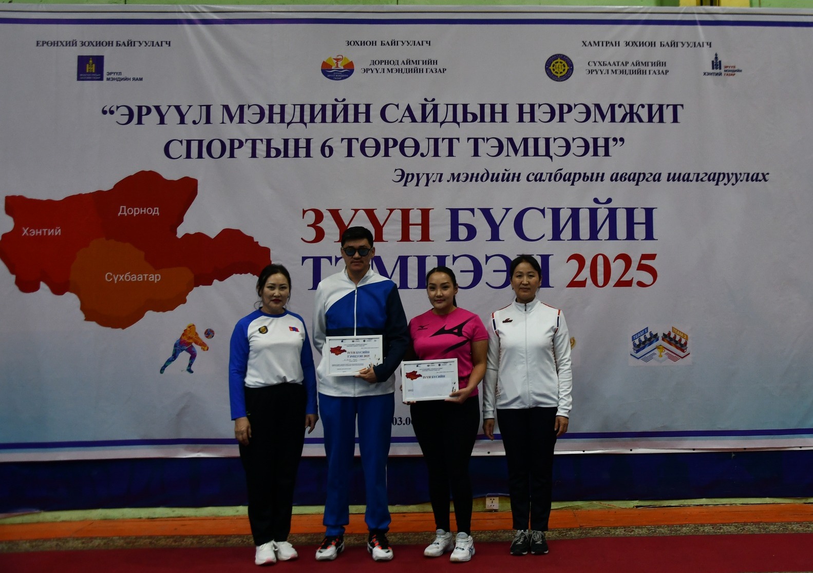 ЭРҮҮЛ МЭНДИЙН САЙДЫН НЭРЭМЖИТ СПОРТЫН 6 ТӨРӨЛТ “ЗҮҮН БҮСИЙН АВАРГА ШАЛГАРУУЛАХ ТЭМЦЭЭН - 2025 “ СПОРТЫН АРГА ХЭМЖЭЭ ДОРНОД АЙМАГТ АМЖИЛТТАЙ ЗОХИОН БАЙГУУЛЛАГДЛАА