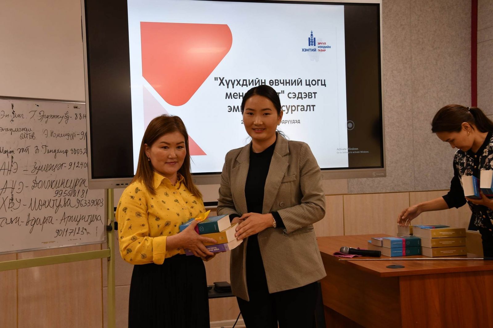 ХӨЦМ-ийн сургалтыг бүх зүрх сэтгэлээ зориулж лекц, дадлага хослуулан заасан 2 сургагч багш болох Хүүхдийн эмч Б.Эрдэнэцэцэг, И.Уранхайч нартаа баярлалаа. Сургалтад идэвхтэй оролцсон ЭМБ-ын эмч нартаа орчин үеийн “ Анагаах Ухааны ” гарын авлага номнуудыг гардуулж урамшууллаа. Та бүхэндээ ажлын амжилт хүсье!.jpg)