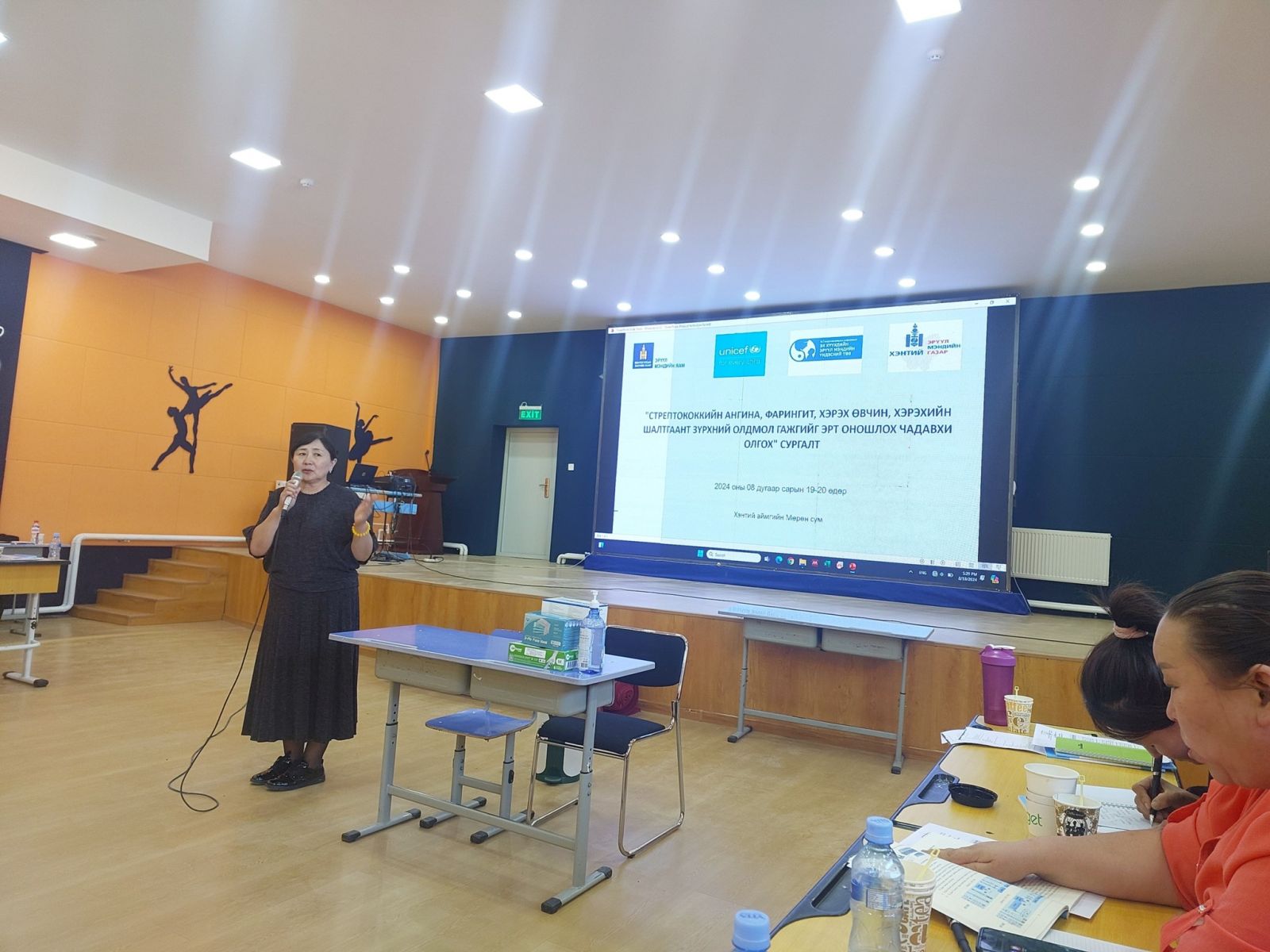 Монгол Улсын Засгийн газар, ЭМЯ хамтран, Люксембургийн Их Гүнт Улсын Засгийн газар, НҮБ-ийн Хүүхдийн Сангийн санхүүжилтээр хэрэгжүүлж буй “Хэрэхийн шалтгаант зүрхний өвчнөөс сэргийлэх, түүнийг бууруулах төсөл”-ийн хүрээнд “СТРЕПТОКОККИЙН АНГИНА, ФАРИНГИТ, ХЭРЭХ ӨВЧИН, ХЭРЭХИЙН ШАЛТГААНТ ЗҮРХНИЙ ОЛДМОЛ ГАЖГИЙГ ЭРТ ОНОШЛОХ ЧАДАВХИ ОЛГОХ” сургалтыг анхан шатны эрүүл мэндийн байгууллага, ЕБС-ийн эмч, мэргэжилтнүүдэд 2024 оны 08 дугаар сарын 19-20-ны өдрүүдэд зохион байгууллаа. Уг сургалтыг Эрүүл мэндийн яамны Хүүхдийн салбар зөвлөлийн дарга, ЭХЭМҮТөвийн эмчилгээ эрхэлсэн дэд дарга, Монгол улсын Хүний гавъяат эмч, Анагаах ухааны доктор, Хүүхдийн Зөвлөх эмч, Төслийн техникийн ажлын хэсгийн дарга Т.Болормаа удирдан явуулсан. Хүүхдэд тохиолдох А бүлгийн β-стрептококкийн гаралтай ангина, фарингит, хүүхдийн хэрэх өвчин, хэрэхийн шалтгаант зүрхний олдмол гажигаас урьдчилан сэргийлэх, эрт илрүүлэх зорилгоор 2024 оны 10 дугаар сараас аймгийн хэмжээнд ерөнхий боловсролын сургуулийн 1-12 дугаар ангийн хүүхдүүдэд А Стрептококкийн хурдавчилсан оношлуурыг ашиглан скрининг үзлэг хийхээр төлөвлөөд байна.